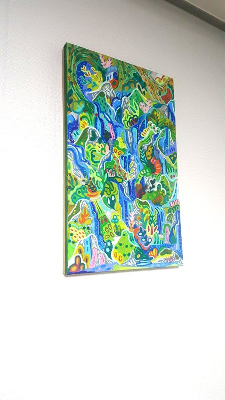 김근아 작가는 설화와 같은 상상이 깃든 세계에 대한 작업을 한다. 그의 작품은 언뜻 보기에 탱화와 같이 뚜렷하고 강한 컬러감과 표현 방식을 가지고 있기에 몽환적이고 신비로운 분위기를 자아낸다. 그의 작품 속에서는 인간과 동물들이 함께 조화를 이루고 살고 하늘과 땅이 얽히고설키듯 뒤섞여 있다. 이런 미지의 영역에 대한 작가적 상상력을 보는 것만으로도 큰 즐거움이 있다. 원시적이고 근원적인 힘이 느껴지는 김근아 작가의 작업에는 에너지가 충만하다. 그의 작품은 지친 현대인에게 마치 오아시스 같은 또는 상상의 나래를 펼칠 수 있도록 도와준다.