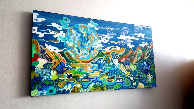 김근아 작가는 설화와 같은 상상이 깃든 세계에 대한 작업을 한다. 그의 작품은 언뜻 보기에 탱화와 같이 뚜렷하고 강한 컬러감과 표현 방식을 가지고 있기에 몽환적이고 신비로운 분위기를 자아낸다. 그의 작품 속에서는 인간과 동물들이 함께 조화를 이루고 살고 하늘과 땅이 얽히고설키듯 뒤섞여 있다. 이런 미지의 영역에 대한 작가적 상상력을 보는 것만으로도 큰 즐거움이 있다. 원시적이고 근원적인 힘이 느껴지는 김근아 작가의 작업에는 에너지가 충만하다. 그의 작품은 지친 현대인에게 마치 오아시스 같은 또는 상상의 나래를 펼칠 수 있도록 도와준다.