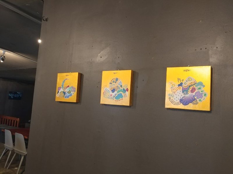 김근아 작가의 작품을 보면 볼수록 생동감이 넘칩니다. 마치 화면 속에서 펄떡이며 살아 나올 것 같은 상상의 동물들과 그 안에서 함께 충만한 삶을 누리는 사람들의 모습을 관찰할 수 있습니다. 그의 작품은 삶에 지치고 권태로움을 느끼는 현대인의 삶에 마치 오아시스 같은 충만함을 제공합니다. 우리는 특히 인물들의 생동하는 움직임, 생명이 있는 듯한 사물들, 이들을 아우르는 강한 색채를 유심히 살펴볼 수 있습니다. 일종의 종교적 상징이 담긴 듯한 작업들, 신화를 구현한 듯한 작가의 상상력이 인상적입니다. 강한 에너지를 전달하는 작가의 작업을 함께 경험해볼 수 있길 바랍니다.
