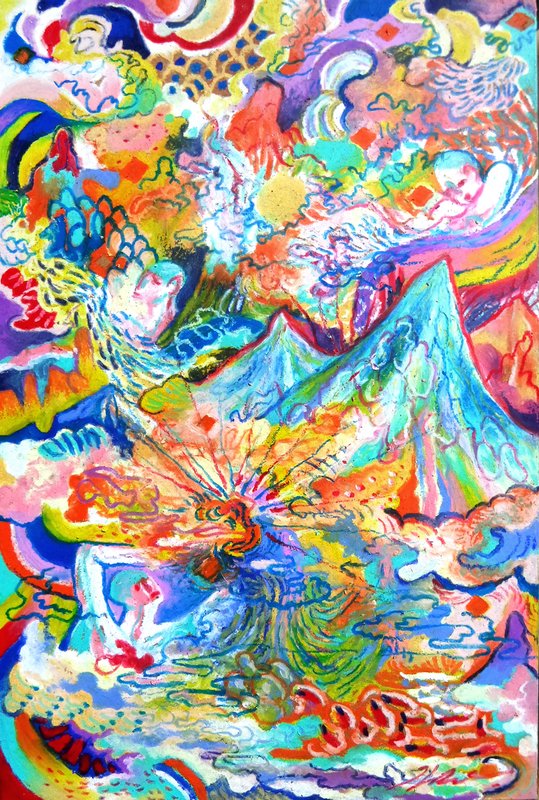 김근아 작가는 설화와 같은 상상이 깃든 세계에 대한 작업을 한다. 그의 작품은 언뜻 보기에 탱화와 같이 뚜렷하고 강한 컬러감과 표현 방식을 가지고 있기에 몽환적이고 신비로운 분위기를 자아낸다. 그의 작품 속에서는 인간과 동물들이 함께 조화를 이루고 살고 하늘과 땅이 얽히고설키듯 뒤섞여 있다. 이런 미지의 영역에 대한 작가적 상상력을 보는 것만으로도 큰 즐거움이 있다. 원시적이고 근원적인 힘이 느껴지는 김근아 작가의 작업에는 에너지가 충만하다. 그의 작품은 지친 현대인에게 마치 오아시스 같은 또는 상상의 나래를 펼칠 수 있도록 도와준다.