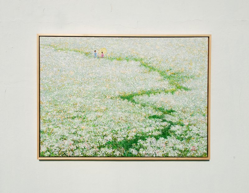 바쁜 일상을 보내다 보면 답답한 도심 속을 벗어나 어디론가 떠나고 싶어집니다. 강정희 작가의 작품은 이럴 때 좋은 휴식처가 되어줄 것입니다. 포슬포슬하게 내려앉은 고운 모래 위에 아크릴 물감을 드리핑 하여 오묘하고 부드러운 분위기 자아내는 작품은 일상 속에서 지친 감상자의 마음을 위로해주는 쉼터와 같은 역할을 합니다. 캔버스 위에 매화꽃과 생동감 있는 자연의 모습이 파스텔 톤의 색점들로 표현되어 따스한 분위기를 연출합니다. 강정희 작가의 작품을 통해 지친 마음에 고요한 평화를 선물해보시길 바랍니다.