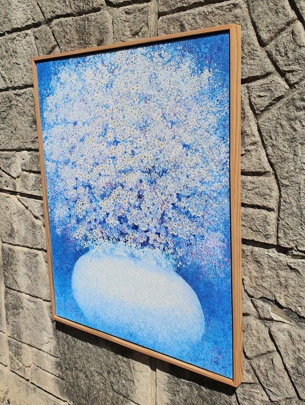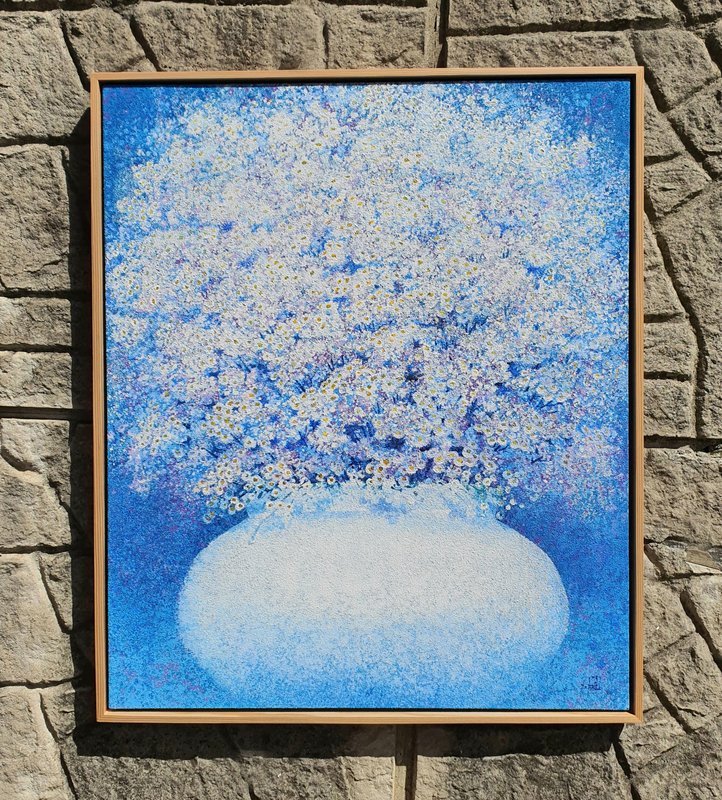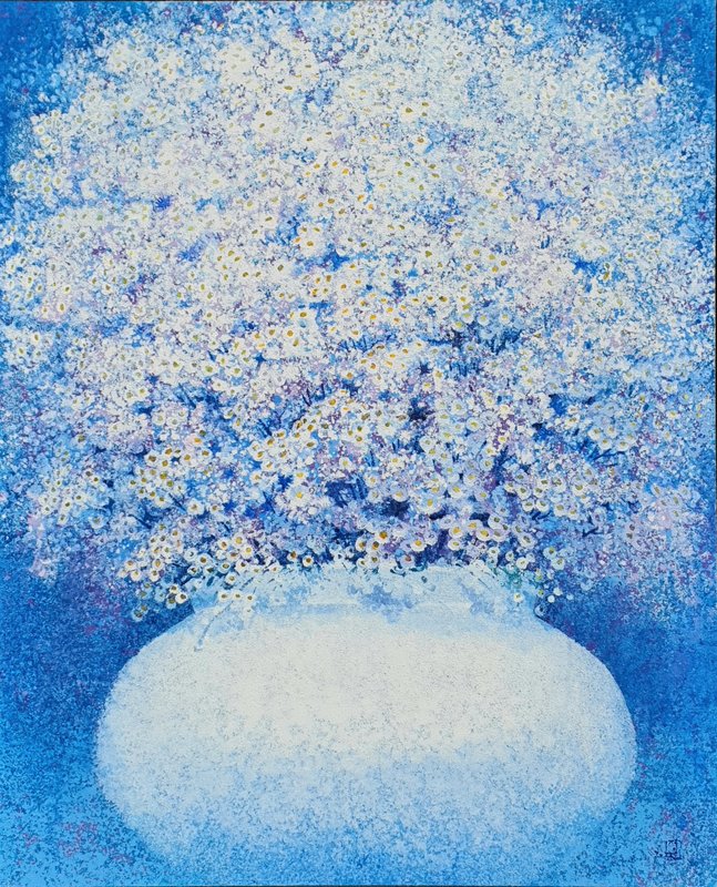바쁜 일상을 보내다 보면 답답한 도심 속을 벗어나 어디론가 떠나고 싶어집니다. 강정희 작가의 작품은 이럴 때 좋은 휴식처가 되어줄 것입니다. 포슬포슬하게 내려앉은 고운 모래 위에 아크릴 물감을 드리핑 하여 오묘하고 부드러운 분위기 자아내는 작품은 일상 속에서 지친 감상자의 마음을 위로해주는 쉼터와 같은 역할을 합니다. 캔버스 위에 매화꽃과 생동감 있는 자연의 모습이 파스텔 톤의 색점들로 표현되어 따스한 분위기를 연출합니다. 강정희 작가의 작품을 통해 지친 마음에 고요한 평화를 선물해보시길 바랍니다.