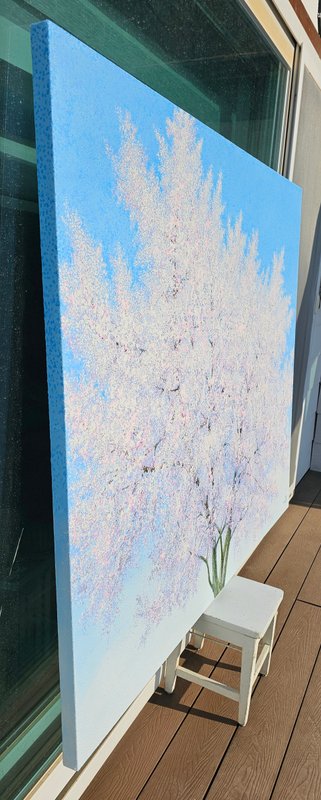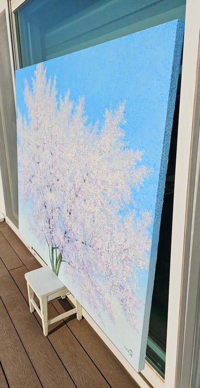 바쁜 일상을 보내다 보면 답답한 도심 속을 벗어나 어디론가 떠나고 싶어집니다. 강정희 작가의 작품은 이럴 때 좋은 휴식처가 되어줄 것입니다. 포슬포슬하게 내려앉은 고운 모래 위에 아크릴 물감을 드리핑 하여 오묘하고 부드러운 분위기 자아내는 작품은 일상 속에서 지친 감상자의 마음을 위로해주는 쉼터와 같은 역할을 합니다. 캔버스 위에 매화꽃과 생동감 있는 자연의 모습이 파스텔 톤의 색점들로 표현되어 따스한 분위기를 연출합니다. 강정희 작가의 작품을 통해 지친 마음에 고요한 평화를 선물해보시길 바랍니다.
