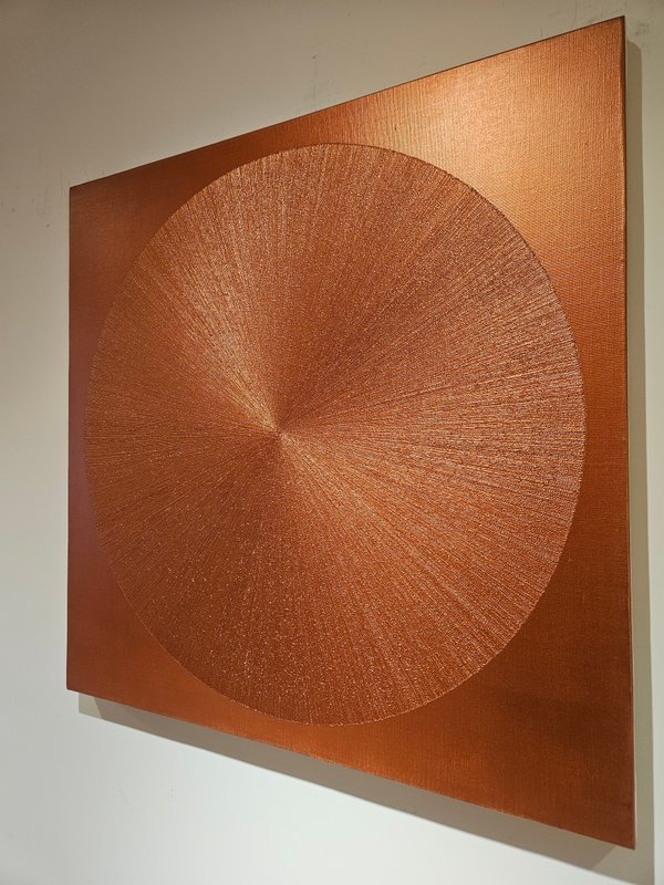 오늘도 복잡한 세상 속에서 이리저리 치이느라 피곤하셨나요? 내가 누구인지, 어떤 생각을 하는지 헷갈릴 때도 있고요. 이럴 땐 작품 한 점과 나만의 시간을 가져보세요. 수많은 점들이 원형으로 수놓아진 게 꼭 우주 속 은하나 행성과 같은 모습을 하고 있습니다. 그 모습을 보는 우리는 우주에 함께 떠다니는 것 같기도, 그 속으로 빨려 들어가는 것 같기도 합니다. 작가는 불교 철학에 영감을 받아 작업하는 만큼 인간관계와 우주, 깨달음을 고찰하며 기도한다고 합니다. 인간은 항상 다른 이와 관계를 맺으며 살아가고, 그 관계는 원인과 결과를 통해 거미줄처럼 엮여 있습니다. 그렇게 정신없이 살아가다 보면 마치 매트릭스 안에 갇혀 살아가는 이들처럼 자신의 삶을 되돌아보지 못합니다. 작가는 이를 자각하고 우주라는 거대한 공간에서 자신을 보는 방법을 탐구합니다. 마지막으로, 작가가 찍는 점 하나하나는 작품을 통해 완성하는 기도의 일부분입니다. 자신의 작품을 마주한 관람자로 하여금 인생의 산만함에서 벗어나 마음의 평온을 찾게 하고 싶었다고 합니다. 이처럼 엘리양 작가의 작품과 함께 부유하는 감정들을 정리하다 보면 진정한 자기 자신과 마주하여 평화의 시간을 가질 수 있을 것입니다.