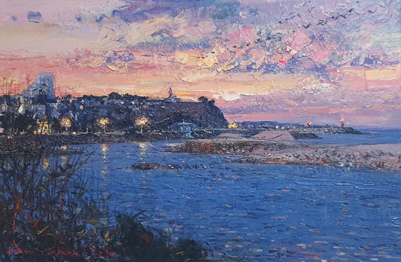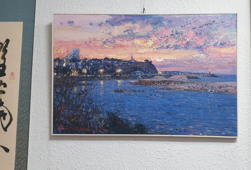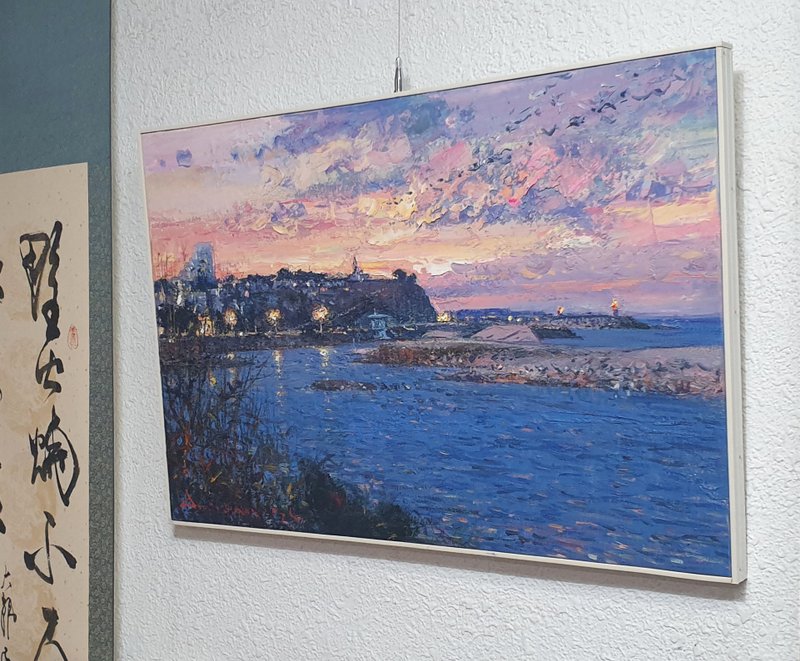조용하고 평화로운 바다가 그려진 작품에서 부드럽고 신비로운 분위기가 느껴집니다. 외진 어촌마을에서 태어나 한없이 넓은 하늘과 바다를 보고 자란 차일만 작가가 긴 시간 자연에 대한 연구를 하고, 이를 얼마나 이해를 했는지 작품 전체의 색과 구도의 조화를 통해 이야기하듯 보여줍니다. 대자연의 아름다움이 감상자에게 고스란히 전해지며, 태양빛을 담고 있는 작품은 평온한 감성을 자극합니다. 강렬한 빛을 발산하던 태양이 시간이 지나 어둠 속에 여운을 남기며 사라지는 모습을 담은 작품을 통해 신비로운 자연에 무한한 경외감을 느껴보시길 바랍니다.