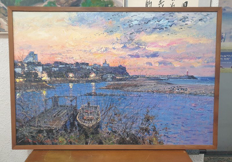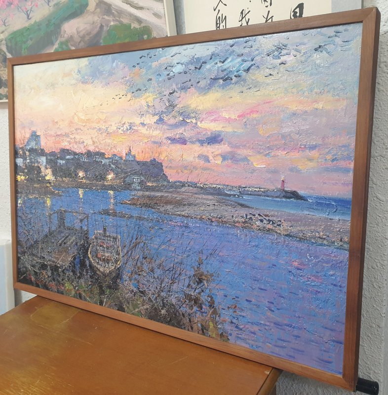 조용하고 평화로운 바다가 그려진 작품에서 부드럽고 신비로운 분위기가 느껴집니다. 외진 어촌마을에서 태어나 한없이 넓은 하늘과 바다를 보고 자란 차일만 작가가 긴 시간 자연에 대한 연구를 하고, 이를 얼마나 이해를 했는지 작품 전체의 색과 구도의 조화를 통해 이야기하듯 보여줍니다. 대자연의 아름다움이 감상자에게 고스란히 전해지며, 태양빛을 담고 있는 작품은 평온한 감성을 자극합니다. 강렬한 빛을 발산하던 태양이 시간이 지나 어둠 속에 여운을 남기며 사라지는 모습을 담은 작품을 통해 신비로운 자연에 무한한 경외감을 느껴보시길 바랍니다.
