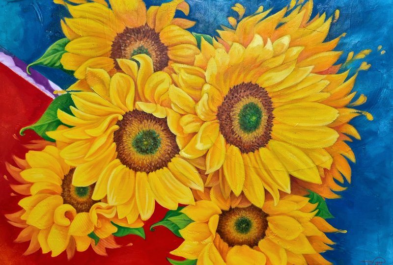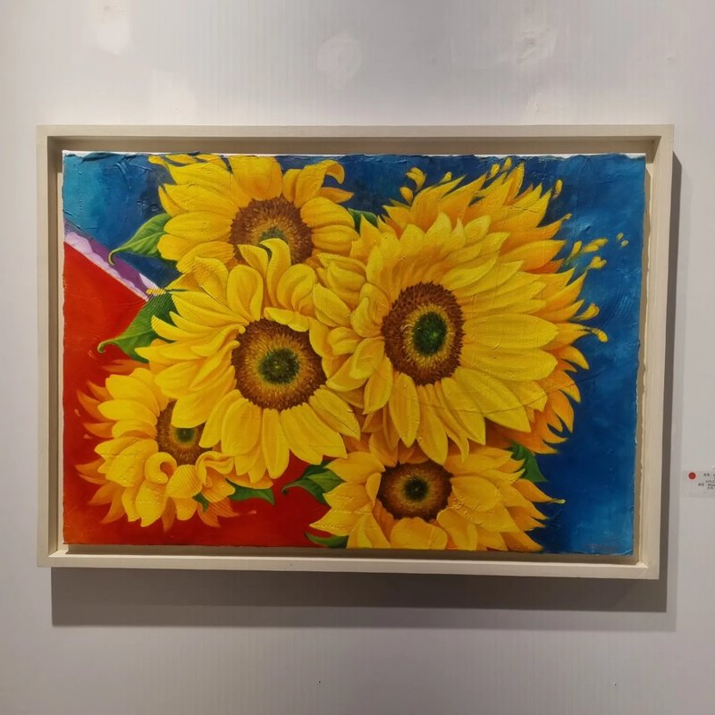 현대인은 타자의 욕망을 욕망한다고 하지만 김민선 작가의 작품에는 오롯이 자신의 소망을 향한 염원이 느껴진다. 작가는 일상 속에서 자주 스치는 자연과 꽃에 자신의 모습을 투영하여 그 꽃 속에 소망의 메시지를 담았다. 자신의 모습을 담은 작품 속 꽃들이 영원하기를 바라는 작가의 소망은 주술적 의미를 담은 고대 벽화의 형식을 빌려 작가는 모델링 페이스트 위에 유화 물감을 올리는 작업 방식으로 화면을 구성하여 물감만으로 느낄 수 없는 입체감 있는 표면과 여러 겹의 레이어에서 느껴지는 깊이감을 . 이는 마치 울퉁불퉁한 표면 위 염원을 담은 고대 벽화를 작품에 주술적 의미를 더한다. 그림을 그리는 과정이 그 무엇보다 즐겁고 기쁘다는 작가는, 자신의 분신인 따스한 색상으로 표현하며 보는 이에게 영원의 희망을 전달하고 있다. 영원히 시들지 않는 화사한 꽃을 바라보며 느끼는 설렘과 행복을 그림을 통해 오롯이 전달하고 싶다는 작가의 바람 아닐까?