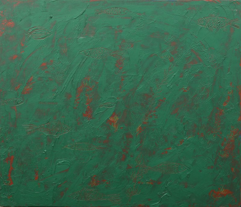 빠른 필치로 그려진 김호준 작가의 작품을 바라보면 시원한 속도감이 느껴집니다. 작가는 물, 풀, 숲 등 자연 친화적인 소재를 여러 겹 중첩하여 독특한 드로잉적 화면을 구성합니다. 자신에게 시각적 여운과 울림을 주는 대상을 선정하여 화면을 구성하였다는 작가는, 개별적인 존재보다 전체로서의 풍경에 집중하고 있습니다. 작품 전면에 보이는 다양한 모습의 사물의 다양한 모습에서 비롯된 영겁의 시간을 나타냅니다. 작품을 말없이 바라보고 있노라면 느껴지는 깊은 여운은 대상에 대한 깊이 있는 탐구에서 비롯된 것이 아닐까요?
