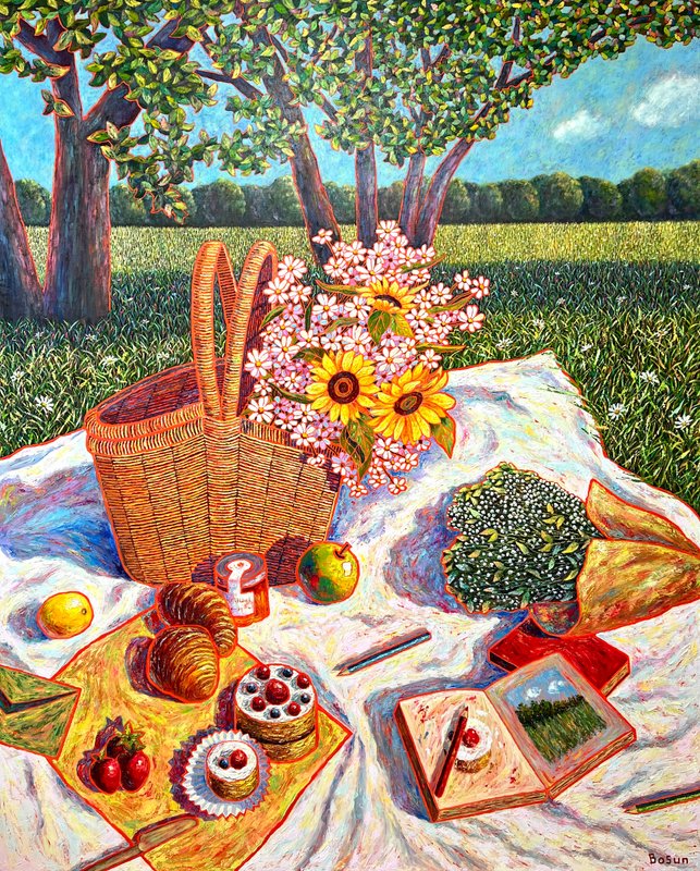 김보선 작가의 작품 속에는 항상 열려있는 창문과 그 너머 부드럽고 온화한 햇살을 드리우는 아름다운 풍경이 보입니다. 그리고 항상 그 풍경을 바라보고 있는 보슬보슬한 곰돌이가 있지요. 쓸쓸한 듯하면서도 따스하고 희망이 느껴지는 듯한 느낌은 바로 이 작품에 '꿈'이 담겨있기 때문은 아닐까요? 어른이 되어버렸지만 어릴 적 꿈을 품고 동경하며 큰 세상을 바라보는 어린아이의 마음을 누구나 갖고 있을 것입니다. 작가는 아름다운 풍경과 따스한 빛, 그리고 어릴 적 추억을 떠올리게 하는 귀여운 곰돌이 인형을 통해 누구나 마음에 지니고 있을 못 이룬 꿈과 무한한 마음을 나타내고 있습니다. 당신의 어릴 적 꿈은 무엇이었나요? 오늘만큼은 마음속에 간직해왔던 그 작고 소중한 꿈을 꺼내서 어루만져 주세요.