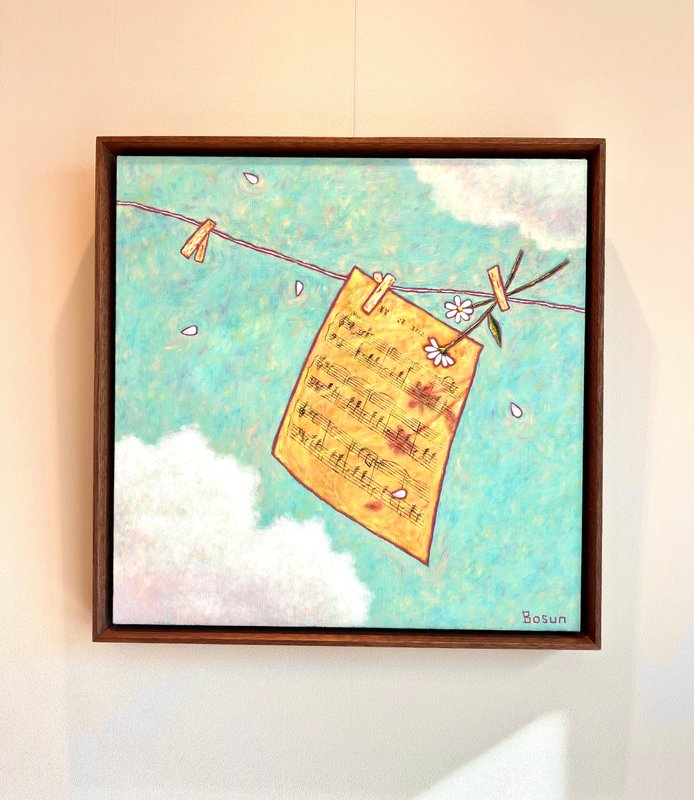 김보선 작가의 작품 속에는 항상 열려있는 창문과 그 너머 부드럽고 온화한 햇살을 드리우는 아름다운 풍경이 보입니다. 그리고 항상 그 풍경을 바라보고 있는 보슬보슬한 곰돌이가 있지요. 쓸쓸한 듯하면서도 따스하고 희망이 느껴지는 듯한 느낌은 바로 이 작품에 '꿈'이 담겨있기 때문은 아닐까요? 어른이 되어버렸지만 어릴 적 꿈을 품고 동경하며 큰 세상을 바라보는 어린아이의 마음을 누구나 갖고 있을 것입니다. 작가는 아름다운 풍경과 따스한 빛, 그리고 어릴 적 추억을 떠올리게 하는 귀여운 곰돌이 인형을 통해 누구나 마음에 지니고 있을 못 이룬 꿈과 무한한 마음을 나타내고 있습니다. 당신의 어릴 적 꿈은 무엇이었나요? 오늘만큼은 마음속에 간직해왔던 그 작고 소중한 꿈을 꺼내서 어루만져 주세요.