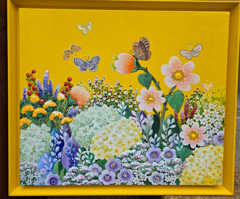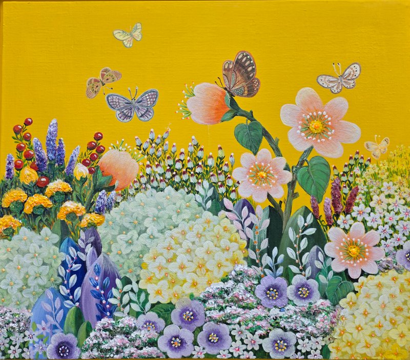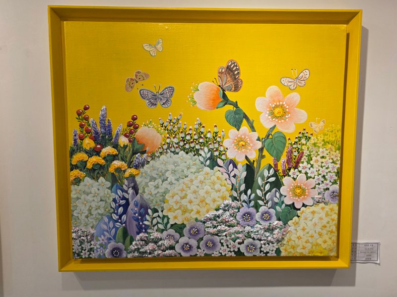 곽연주 작가는 꽃, 나비를 이용하여 희망을 그려내는 작가입니다. 작품에는 화면 가득히 섬세하고 가지런하게 꽃과 나비들이 묘사되어 있습니다. 단순한 대상의 구성을 넘어, 정돈된 화면에는 작가가 지금까지 작업해온 대상에 대한 통찰력이 엿보이기도 합니다. 작가는 자신의 그림을 통하여 사람들에게 밝은 에너지를 전달하며 일상의 활력을 선물하고 싶어합니다. 곽연주 작가의 활력과 기분이 작품을 통해 전해졌기 때문일까요? 작품을 보고 있으면 하루하루 반복되는 일상에 무언가 좋은 소식이 찾아올 것만 같습니다. 곽연주 작가의 작품을 통하여 고객님의 공간에 긍정적인 희망의 에너지를 더해보시는 것은 어떨까요?