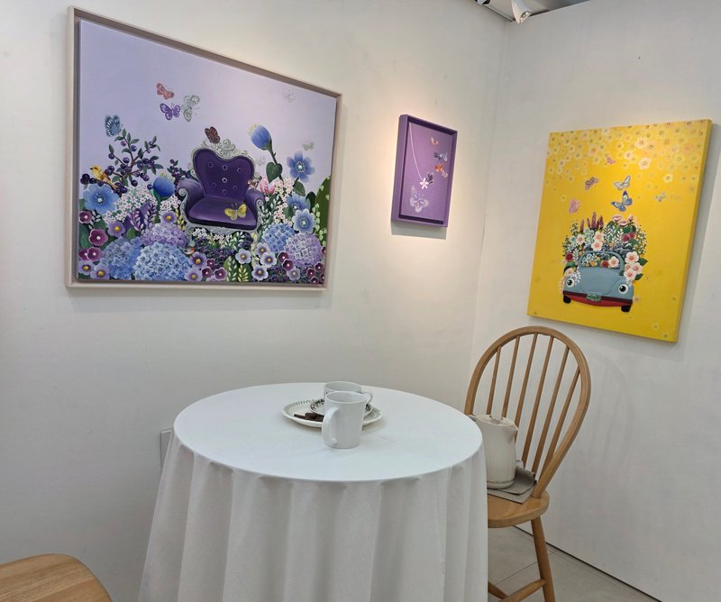 곽연주 작가는 꽃, 나비를 이용하여 희망을 그려내는 작가입니다. 작품에는 화면 가득히 섬세하고 가지런하게 꽃과 나비들이 묘사되어 있습니다. 단순한 대상의 구성을 넘어, 정돈된 화면에는 작가가 지금까지 작업해온 대상에 대한 통찰력이 엿보이기도 합니다. 작가는 자신의 그림을 통하여 사람들에게 밝은 에너지를 전달하며 일상의 활력을 선물하고 싶어합니다. 곽연주 작가의 활력과 기분이 작품을 통해 전해졌기 때문일까요? 작품을 보고 있으면 하루하루 반복되는 일상에 무언가 좋은 소식이 찾아올 것만 같습니다. 곽연주 작가의 작품을 통하여 고객님의 공간에 긍정적인 희망의 에너지를 더해보시는 것은 어떨까요?