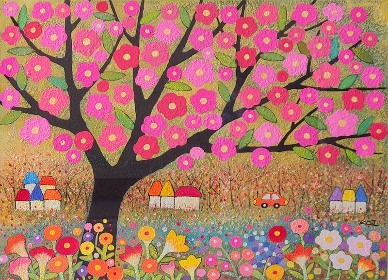 작품에는 다양한 메시지가 있지만 시각예술의 첫 번째 효용은 바라만 보아도 기분 좋은 심상을 전하는 것 아닐까요? 마치 동화 속 한 장면 같은 이 작품을 바라보고 있노라면 마음 한 켠에 가지고 있는 따뜻한 기억이 떠오릅니다. 작가는 일상에 지친 현대인에게 '행복과 사랑'을 주제로 누구나 공감 가능한 서사를 전달하고 있습니다. 특히 작품 속 화사한 색채는 감상자에게 행복감과 편안함을 동시에 선사합니다. 지친 하루, 작품을 통하여 나만의 행복 여행을 떠나보시는 것은 어떠실까요?