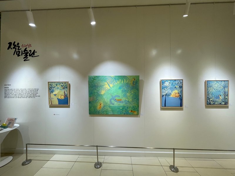 대자연 속에는 늘 좋은 기운이 가득하다. 나무의 싱그러움 그 사이로 지나가는 바람의 숨결, 아낌없이 따스한 기운을 주는 따뜻한 햇볕. 빌딩 숲에서 살아가는 현대인들에게 자연은 그리움의 대상인 동시에 도피하고 싶은 낙원의 의미가 있다. 빠르게 하루를 보내는 동안 하늘 한번 쳐다볼 시간조차 없는 이들에게 여유와 휴식이 필요한 이유다.단순한 형태의 익살스러운 동물들이 자연 속에서 뛰노는 모습은 감상자에게 편안함을 느끼게 해준다. 어려운 의미나 속내를 파악하려 애써 노력하지 않아도 되는 작가의 의도대로 그저 즐기기만 하면 좋을 것이다. 대자연의 싱그러움 속에서 본인이 좋아하는 것들과 함께 뛰노는 상상 속 동물들을 보며 행복과 여유를 찾아보는 건 어떨까.