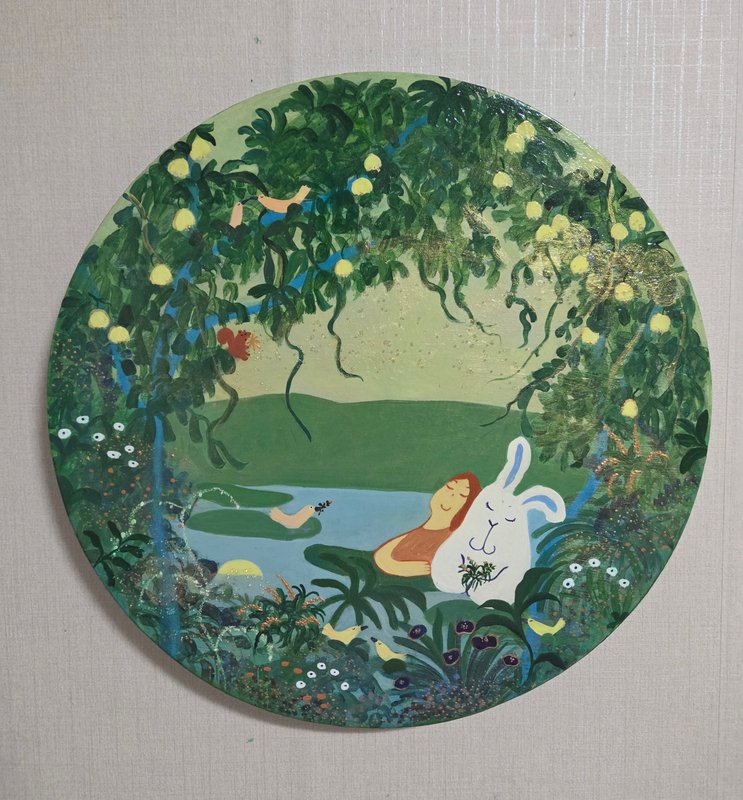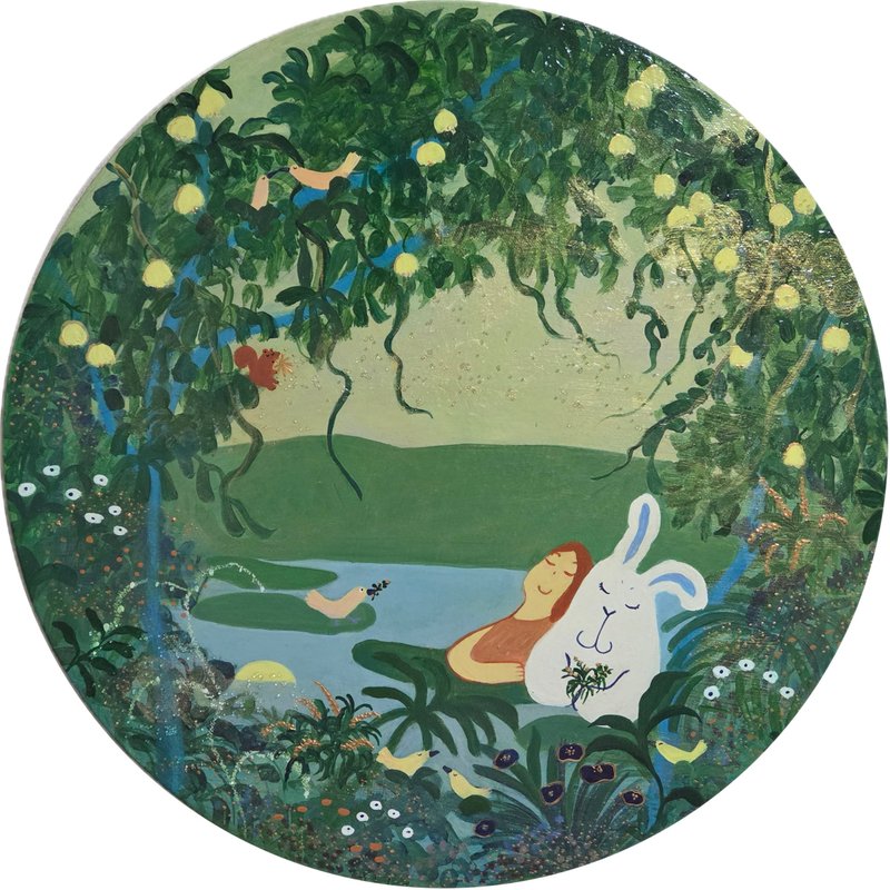 대자연 속에는 늘 좋은 기운이 가득하다. 나무의 싱그러움 그 사이로 지나가는 바람의 숨결, 아낌없이 따스한 기운을 주는 따뜻한 햇볕. 빌딩 숲에서 살아가는 현대인들에게 자연은 그리움의 대상인 동시에 도피하고 싶은 낙원의 의미가 있다. 빠르게 하루를 보내는 동안 하늘 한번 쳐다볼 시간조차 없는 이들에게 여유와 휴식이 필요한 이유다.단순한 형태의 익살스러운 동물들이 자연 속에서 뛰노는 모습은 감상자에게 편안함을 느끼게 해준다. 어려운 의미나 속내를 파악하려 애써 노력하지 않아도 되는 작가의 의도대로 그저 즐기기만 하면 좋을 것이다. 대자연의 싱그러움 속에서 본인이 좋아하는 것들과 함께 뛰노는 상상 속 동물들을 보며 행복과 여유를 찾아보는 건 어떨까.