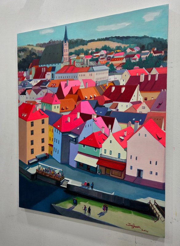 정해옥 작가의 작품을 보면 아름다운 여행지에 떠나온 듯한 이색적인 분위기에 매료됩니다. 그러나 작품 앞에 서서 잠시 머물러보면, 이색적인 풍경 속에서 익숙하고 친근한 풍경들이 공존해 있다는 것을 발견할 수 있습니다. 보기만 해도 설레고 행복해지는 여행지의 모습이 그대로 담겨 있으면서도, 이야기를 도란도란 나누는 사람들, 익숙한 도시의 풍경과 자연, 푸른 하늘 등의 친근한 모습들이 표현되어 있습니다. 정해옥 작가의 작품을 감상하며, 행복했던 여행의 기억을 떠올려 보시길 바랍니다. 우리의 인생과 똑 닮아 있는 여행, 그때 느꼈던 여운과 감정들을 다시 한번 떠올려보고 일상을 환기해 보세요. 바쁜 일상 속에서 잠시 떠나 삶의 여유와 쉼을 느끼실 수 있을 것입니다.