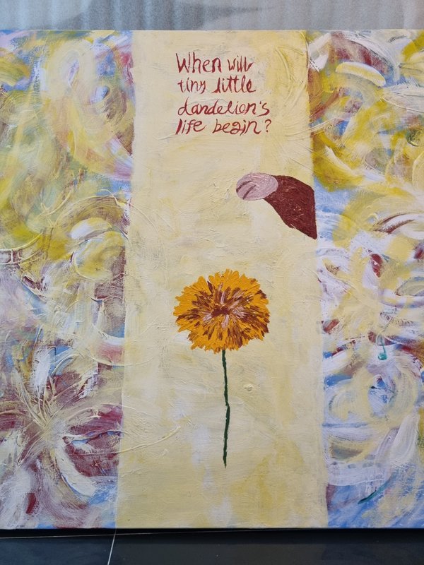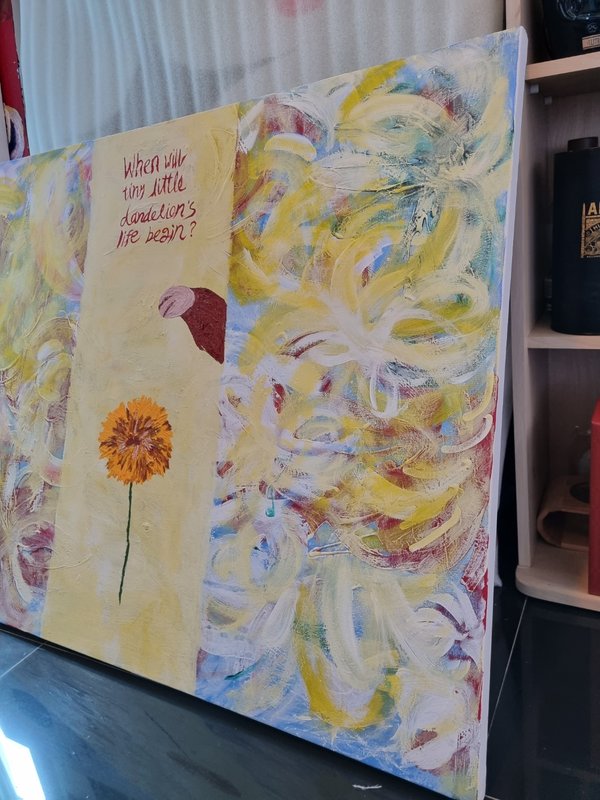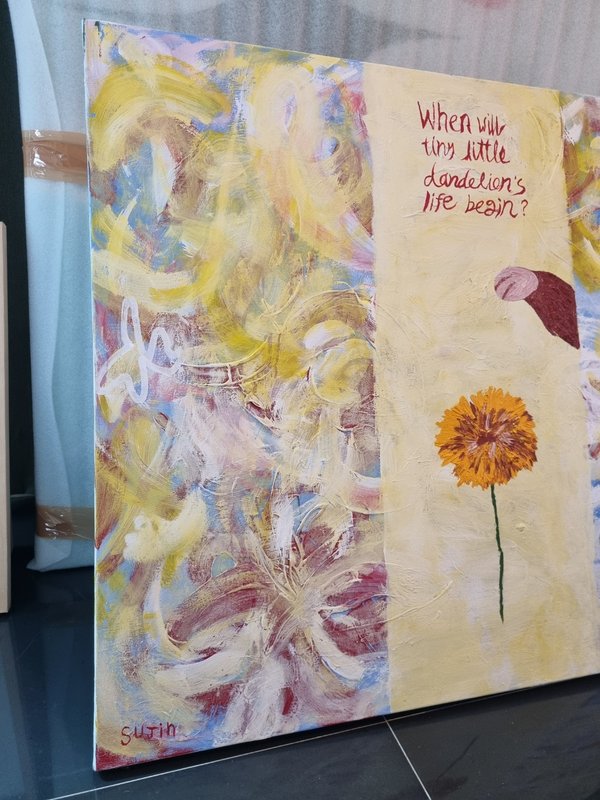 현대 사회에서 사람들은 다양한 형태의 공동체를 이루며 살아간다. 거리를 두기도, 아주 가까이 공간을 나누기도 한다. 그러면서 사람들 사이에는 다양한 감정들이 오간다. 애정이 오가고, 연민도 오가며 질투도, 외로움도 오간다. 그 속에서의 사랑, 빈틈을 채우는 은근한 외로움과 서로를 향한 작은 경의를 그리고자 한다. 사람 사이에서 느껴지는 크고 작은 결들을 구현해 본다. 작품의 색감과 분위기는 비가 내리는 늦봄과 초여름 사이이며 부드러운 빗방울이 부서지는 순간을 비정형적으로 나타낸다. 화폭에 칠해진 푸른색은 고요한 사랑의 감정을 들게 한다. 아주 다양한 사람들이 공존하는 것처럼, 원과 직사각형들은 화폭 위에서 각양각색으로 드러난다. 직사각형들은 서로 마주 보거나 옆을 지키고 있지만, 관찰자에게 왠지 모를 고독감을 들게 한다. 이는 함께 어울려도 가슴 한쪽에선 외로움을 느끼며 살아가는 `사람들’의 모습을 대표한다.