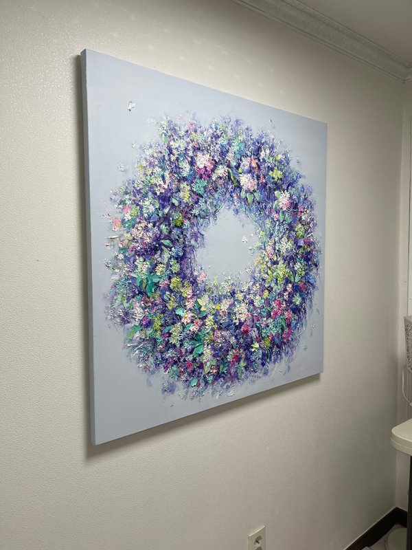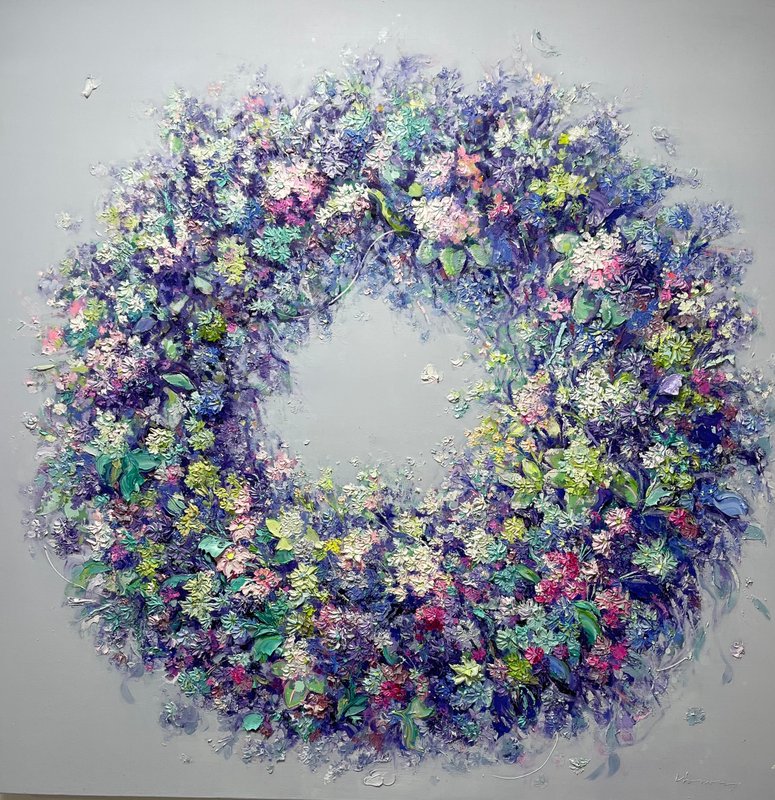 꽃은 누구에게나 아름답고 충만한 감정을 불러일으키는 소재입니다. 그래서인지 많은 화가가 꽃을 작품의 소재로, 때로는 주제로 부각해 표현해 내는 것인지도 모릅니다. 강정주 작가의 작품 또한 이 꽃이 가진 의미 그대로를 담아내고 있어 이처럼 꽃이 영구히 귀속된 그 의미를 다시 한번 생각해 보게 만듭니다. 자신이 캔버스 앞에 앉아 행복해하는 감정을 꽃에 투영시켜 그려내고자 했다는 작가는, 두터운 마티에르를 붓과 나이프로 표현해 주체할 수 없이 차오르는 심정을 절실하게 표현하였습니다. 그래서인지 강정주 작가의 작품을 보고 있노라면 꽃과 그 아름다움을 탐닉하는 나의 심정 또한 충만해지는 듯한 느낌을 가져다줍니다.