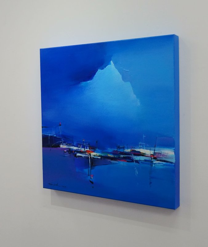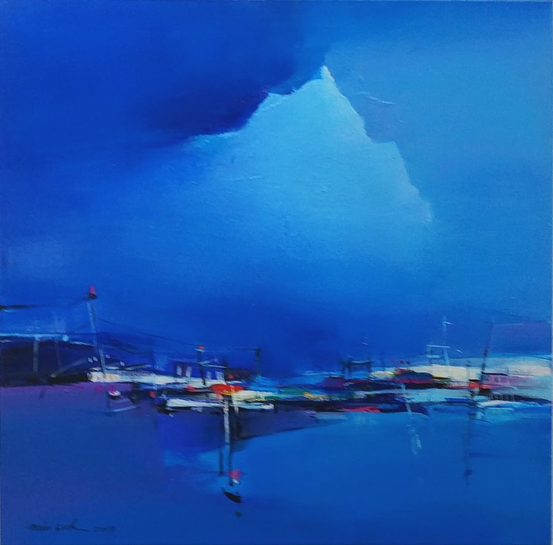 풍경화인 것 같으면서도 마치 추상화인 것 같기도 한 작가의 그림은 우리의 시선을 사로잡습니다. 아름다운 색의 향연은 우리의 마음에 깊은 여운을 남기고 그림 앞에 오래 머무르게 합니다. 풍경 속 하늘이 매우 인상적인 느낌을 줍니다. 구름 사이로 존재감을 드러내는 한 줄기의 빛 같기도 하고 봉우리를 수줍게 드러낸 산의 형상 같기도 합니다. 아마 보는 이의 마음과 기분에 따라 달리 보일 수 있겠지요. 실재를 그대로 재현하지 않았기에 우리에게는 그림을 해석할 수 있는 여지가 생기고 심상의 한계를 더욱 넓혀갈 수 있습니다. 고요하고 묵직한 울림을 주는 듯한 풍경 속에서 아름답게 빛나고 있는 색의 향연 속에 빠져들어 보세요.
