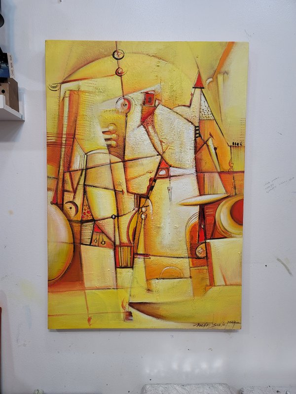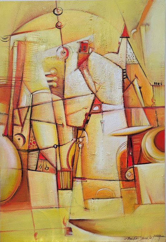 풍경화인 것 같으면서도 마치 추상화인 것 같기도 한 작가의 그림은 우리의 시선을 사로잡습니다. 아름다운 색의 향연은 우리의 마음에 깊은 여운을 남기고 그림 앞에 오래 머무르게 합니다. 풍경 속 하늘이 매우 인상적인 느낌을 줍니다. 구름 사이로 존재감을 드러내는 한 줄기의 빛 같기도 하고 봉우리를 수줍게 드러낸 산의 형상 같기도 합니다. 아마 보는 이의 마음과 기분에 따라 달리 보일 수 있겠지요. 실재를 그대로 재현하지 않았기에 우리에게는 그림을 해석할 수 있는 여지가 생기고 심상의 한계를 더욱 넓혀갈 수 있습니다. 고요하고 묵직한 울림을 주는 듯한 풍경 속에서 아름답게 빛나고 있는 색의 향연 속에 빠져들어 보세요.