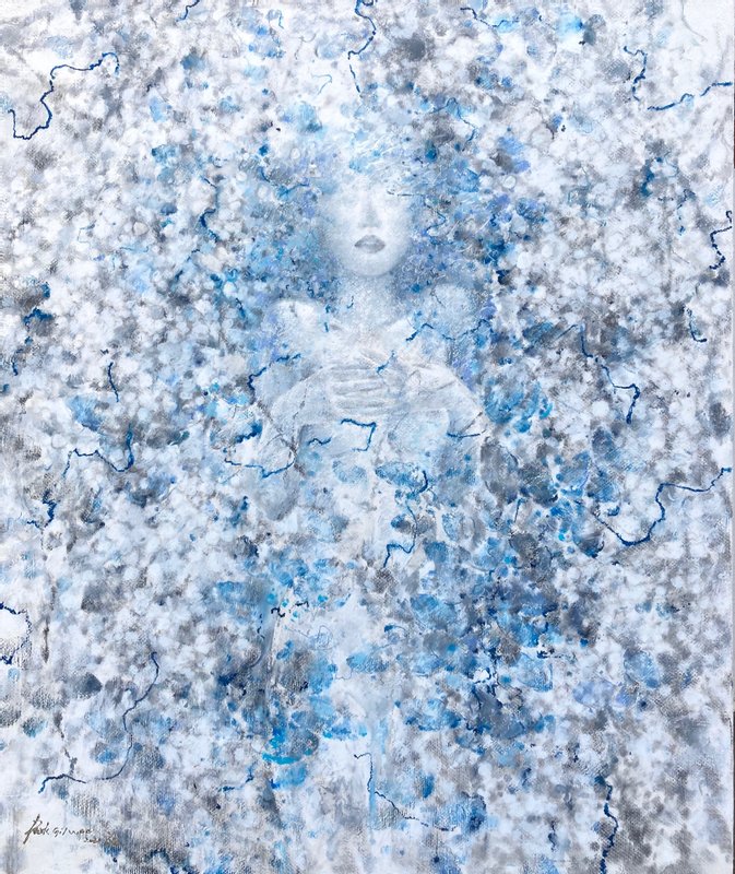 마치 먼지를 쓸어내는 깃털처럼, 박길우 작가의 작품에는 세상의 악함을 털어내는 깃털이 등장합니다. 깃털들은 오스카 와일드의 소설 ‘나이팅게일과 장미’에서 자신의 몸을 바쳐 핏빛 장미를 선사한 나이팅게일의 순수한 감정에 대한 찬사의 의미를 가집니다. 회색빛 나뭇가지들과 깃털들 사이에 순수한 영혼을 상징하는 푸른빛과 사랑을 뜻하는 붉은 장미를 소중히 담아냅니다. 박길우 작가의 부드럽고 간질간질한 붓 터치를 통해 세상의 먼지를 털어버리고, 가족, 우정, 사랑과 같은 소중한 감정들을 다시 되찾게 될 것입니다.