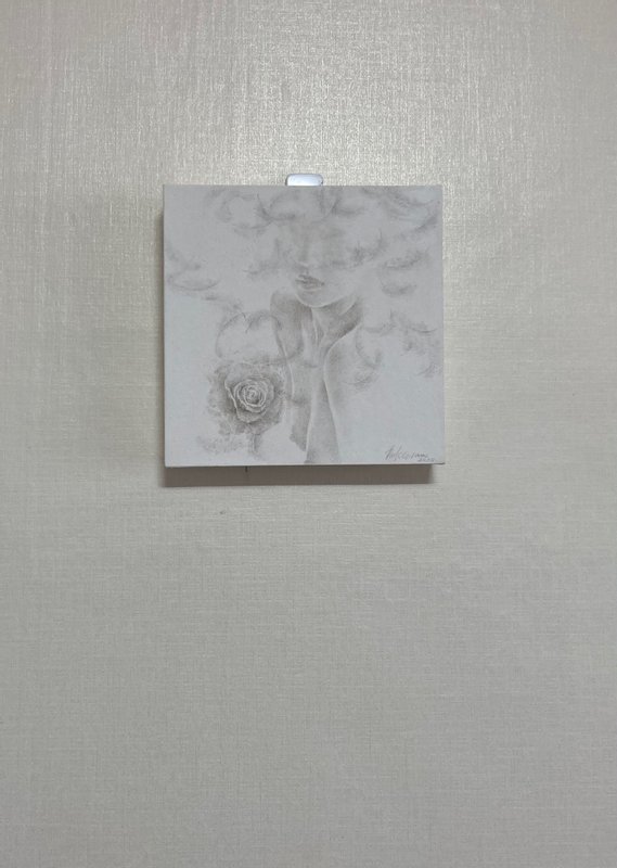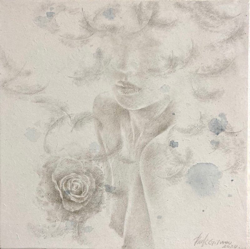 마치 먼지를 쓸어내는 깃털처럼, 박길우 작가의 작품에는 세상의 악함을 털어내는 깃털이 등장합니다. 깃털들은 오스카 와일드의 소설 ‘나이팅게일과 장미’에서 자신의 몸을 바쳐 핏빛 장미를 선사한 나이팅게일의 순수한 감정에 대한 찬사의 의미를 가집니다. 회색빛 나뭇가지들과 깃털들 사이에 순수한 영혼을 상징하는 푸른빛과 사랑을 뜻하는 붉은 장미를 소중히 담아냅니다. 박길우 작가의 부드럽고 간질간질한 붓 터치를 통해 세상의 먼지를 털어버리고, 가족, 우정, 사랑과 같은 소중한 감정들을 다시 되찾게 될 것입니다.