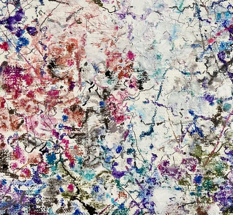 마치 먼지를 쓸어내는 깃털처럼, 박길우 작가의 작품에는 세상의 악함을 털어내는 깃털이 등장합니다. 깃털들은 오스카 와일드의 소설 ‘나이팅게일과 장미’에서 자신의 몸을 바쳐 핏빛 장미를 선사한 나이팅게일의 순수한 감정에 대한 찬사의 의미를 가집니다. 회색빛 나뭇가지들과 깃털들 사이에 순수한 영혼을 상징하는 푸른빛과 사랑을 뜻하는 붉은 장미를 소중히 담아냅니다. 박길우 작가의 부드럽고 간질간질한 붓 터치를 통해 세상의 먼지를 털어버리고, 가족, 우정, 사랑과 같은 소중한 감정들을 다시 되찾게 될 것입니다.