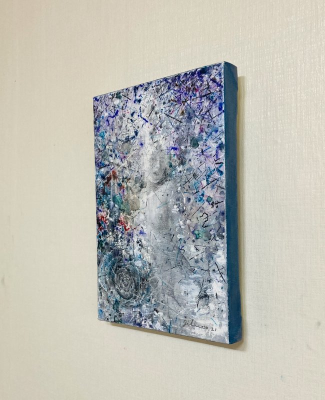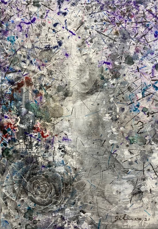 마치 먼지를 쓸어내는 깃털처럼, 박길우 작가의 작품에는 세상의 악함을 털어내는 깃털이 등장합니다. 깃털들은 오스카 와일드의 소설 ‘나이팅게일과 장미’에서 자신의 몸을 바쳐 핏빛 장미를 선사한 나이팅게일의 순수한 감정에 대한 찬사의 의미를 가집니다. 회색빛 나뭇가지들과 깃털들 사이에 순수한 영혼을 상징하는 푸른빛과 사랑을 뜻하는 붉은 장미를 소중히 담아냅니다. 박길우 작가의 부드럽고 간질간질한 붓 터치를 통해 세상의 먼지를 털어버리고, 가족, 우정, 사랑과 같은 소중한 감정들을 다시 되찾게 될 것입니다.