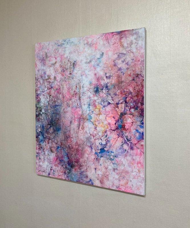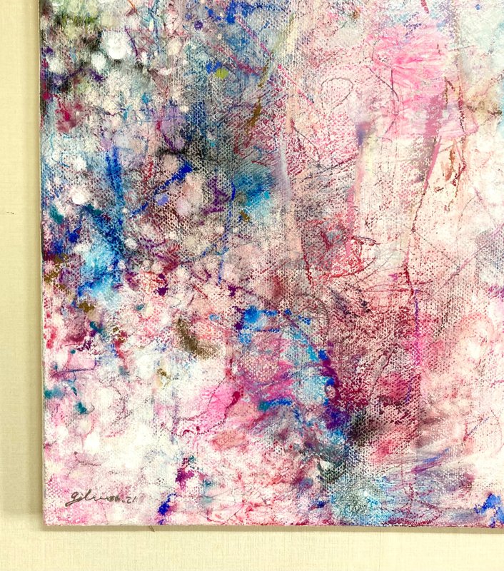 마치 먼지를 쓸어내는 깃털처럼, 박길우 작가의 작품에는 세상의 악함을 털어내는 깃털이 등장합니다. 깃털들은 오스카 와일드의 소설 ‘나이팅게일과 장미’에서 자신의 몸을 바쳐 핏빛 장미를 선사한 나이팅게일의 순수한 감정에 대한 찬사의 의미를 가집니다. 회색빛 나뭇가지들과 깃털들 사이에 순수한 영혼을 상징하는 푸른빛과 사랑을 뜻하는 붉은 장미를 소중히 담아냅니다. 박길우 작가의 부드럽고 간질간질한 붓 터치를 통해 세상의 먼지를 털어버리고, 가족, 우정, 사랑과 같은 소중한 감정들을 다시 되찾게 될 것입니다.