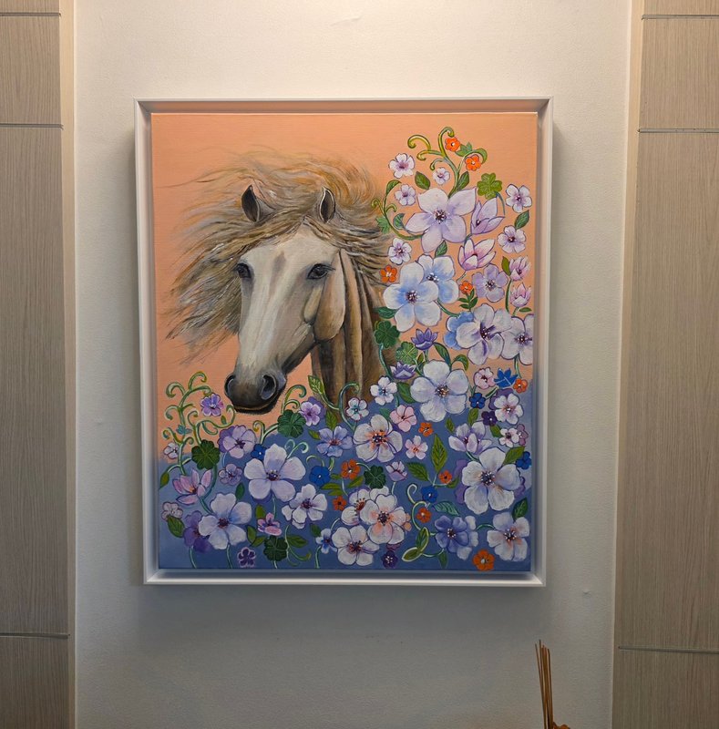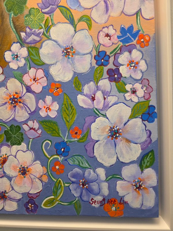 임승희 작가는 꽃과 항아리를 소재로 현대인에게 긍정적인 에너지와 행복감을 주는 작업을 합니다. 작가의 ‘행복 담기’라는 주제로 표현된 달항아리는 황금빛 색채의 두터운 마띠에르가 돋보이며, ‘사랑 이야기’ 시리즈 작품에서는 화려한 색채들이 불꽃이 터지듯 아름답게 물들어 있습니다. 이는 마치 축제의 현장처럼 벅찬 행복감을 느끼게 해주고 감탄을 자아내게 합니다. 작가는 현대인의 상처 입고 닫힌 마음을 열고, 자신의 작품을 통해 모두에게 소통의 장을 열어주고 싶다고 합니다. 행복한 꿈을 꾸고 그림을 그리는 순간이 가장 행복하다는 작가의 마음이 반영된 작품처럼, 각박한 현실에서 복잡한 고민을 모두 내려놓고 행복 가득한 꿈을 꾸는 희망찬 공간으로 변화시켜 보세요