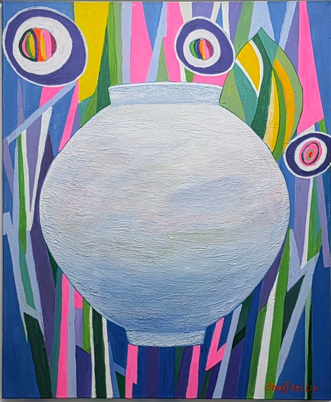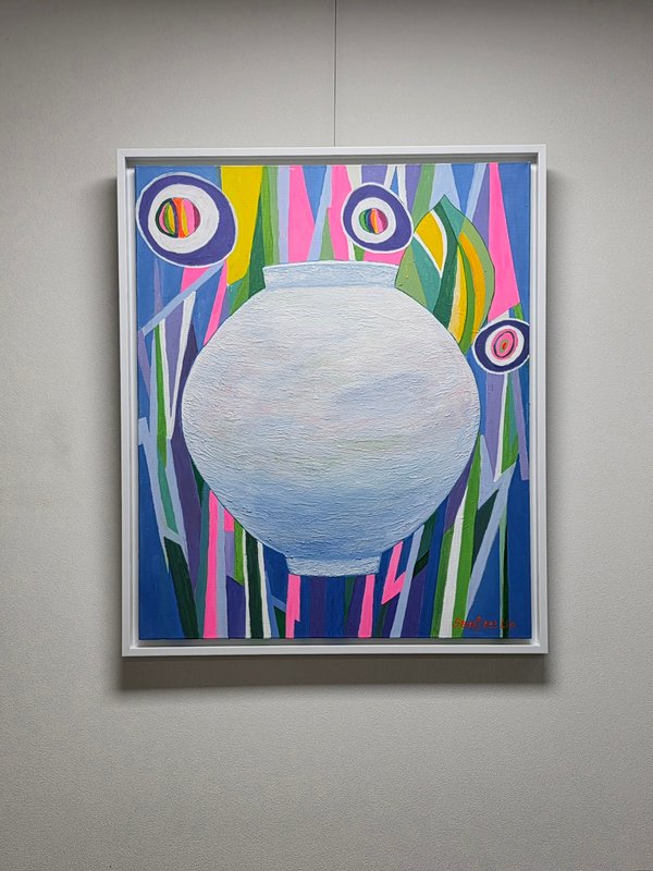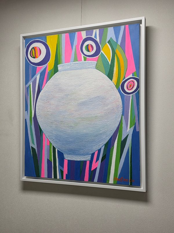 임승희 작가는 꽃과 항아리를 소재로 현대인에게 긍정적인 에너지와 행복감을 주는 작업을 합니다. 작가의 ‘행복 담기’라는 주제로 표현된 달항아리는 황금빛 색채의 두터운 마띠에르가 돋보이며, ‘사랑 이야기’ 시리즈 작품에서는 화려한 색채들이 불꽃이 터지듯 아름답게 물들어 있습니다. 이는 마치 축제의 현장처럼 벅찬 행복감을 느끼게 해주고 감탄을 자아내게 합니다. 작가는 현대인의 상처 입고 닫힌 마음을 열고, 자신의 작품을 통해 모두에게 소통의 장을 열어주고 싶다고 합니다. 행복한 꿈을 꾸고 그림을 그리는 순간이 가장 행복하다는 작가의 마음이 반영된 작품처럼, 각박한 현실에서 복잡한 고민을 모두 내려놓고 행복 가득한 꿈을 꾸는 희망찬 공간으로 변화시켜 보세요
