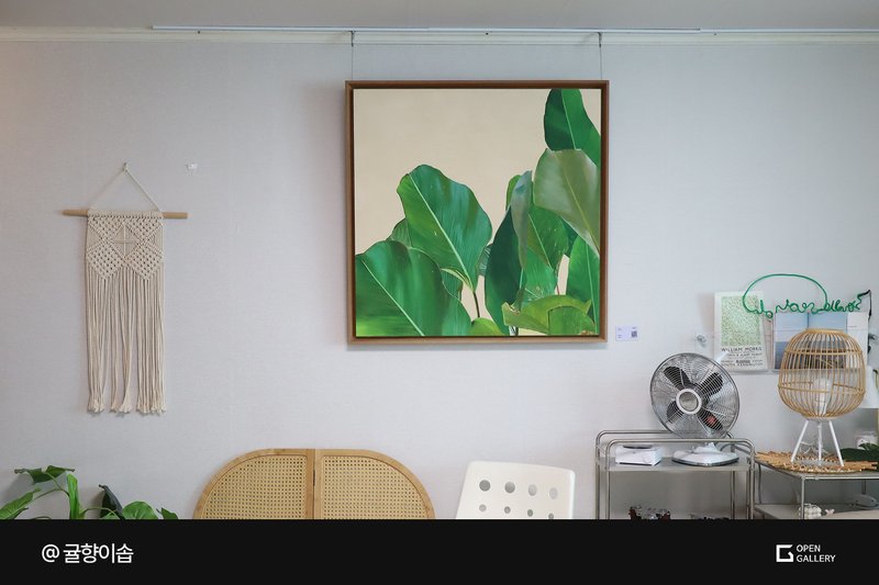 모든 고소운 작가님의 작품에는 자연이 그려져 있습니다. 푸릇한 잎사귀, 따스한 색감을 품은 세포, 이런 친숙한 소재는 감상자로 하여금 더 작품과 편하게 느끼게 해줍니다. 이런 안정감을 주는 작품 때문에 사회에 존재하는 타인과의 관계성이라는 다소 차갑게 생각할 수 있는 주제가 더 쉽게 다가옵니다. 특히 자연계의 모습인 만큼 우리에게 익숙하지만, 우리 주변에 흔히 볼 수 없는 것들로 이루어져, 작품이라는 하나의 창을 통해 여행하는 것 같은 느낌과 그로부터 힐링을 받을 수 있게 도와줍니다. 집안에 편안하고 지친 마음을 달래줄 공간을 만들고 싶으시다면 이 작품을 감상하시는 걸 추천합니다.