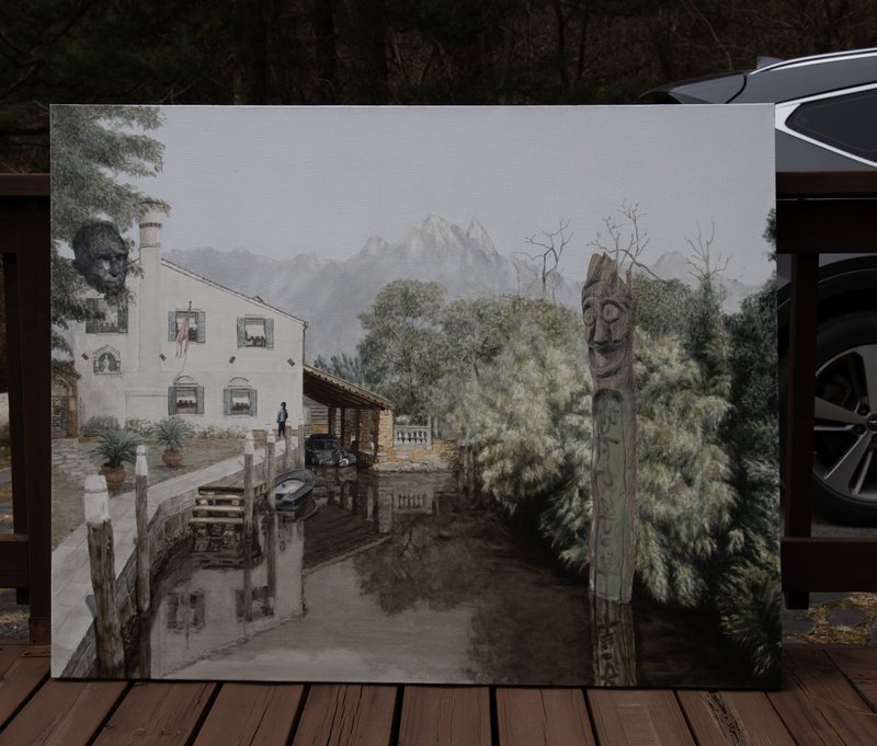 마치 옛날 사진같이 그려진 흑백 극사실주의 풍경에 노승기 작가님의 상상에 의해 덮어진 강렬한 색감은 사람의 눈을 사로잡는 강렬한 존재감을 선보입니다. 흔한 풍경에 작가님의 상상이 더해진 그림은 사람들의 걸음을 멈추고 작품을 관찰하게 만드는 매력이 있습니다. 그림 한 점으로 깔끔하고 모던한 분위기를 만들기 원하신다면, 이 작품을 추천해 드립니다.