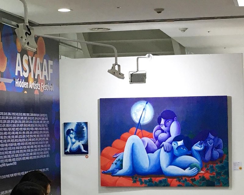 이효선 작가는 인물을 자신만의 규칙으로 표현한다. 파란 피부, 기하학적인 몸의 형태, 입이 없는 얼굴은 작가의 작품 속에 주로 등장하는 인물들의 특징이다. 작가는 파란색에 많은 이야기를 담을 수 있으며 동시에 우리 모두가 감정을 이입할 수 있는 색이라고 말한다. 또한 입이 없는 마스크를 가진 인물은 감정을 읽을 수 있는 대상, 누군지 명확하게 알 수 없다는 점에서 익명성을 가지게 된다. 기하학으로 표현된 몸도 그렇다. 모두에게 있는 공통적 몸의 구성을 단순화시켜 작품 속 인물을 타인이 될 수도 있고 우리 자신이 될 수도 있게 한다. 작가는 감상자 개인의 이야기를 자신의 작품 속에 투영할 수 있는 장치를 설치해 작품으로 하여금 무한한 의미를 가지게 한다.