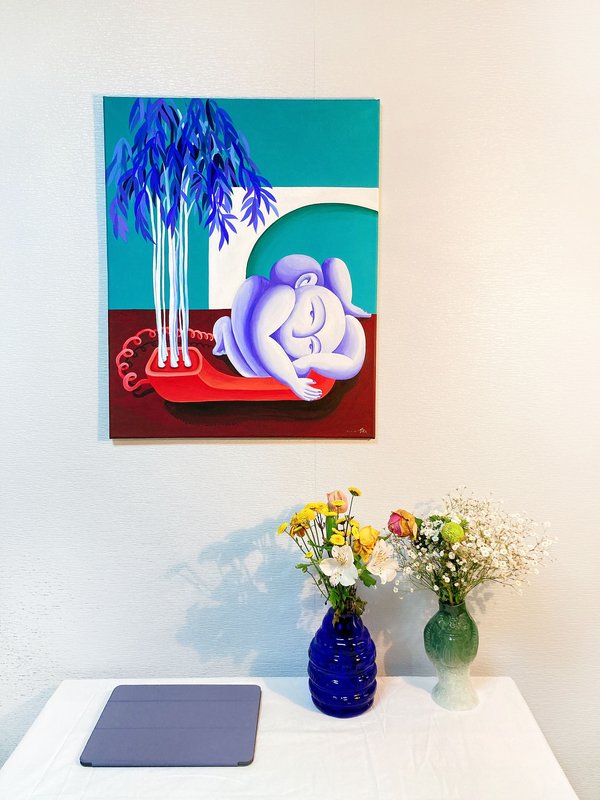 이효선 작가는 인물을 자신만의 규칙으로 표현한다. 파란 피부, 기하학적인 몸의 형태, 입이 없는 얼굴은 작가의 작품 속에 주로 등장하는 인물들의 특징이다. 작가는 파란색에 많은 이야기를 담을 수 있으며 동시에 우리 모두가 감정을 이입할 수 있는 색이라고 말한다. 또한 입이 없는 마스크를 가진 인물은 감정을 읽을 수 있는 대상, 누군지 명확하게 알 수 없다는 점에서 익명성을 가지게 된다. 기하학으로 표현된 몸도 그렇다. 모두에게 있는 공통적 몸의 구성을 단순화시켜 작품 속 인물을 타인이 될 수도 있고 우리 자신이 될 수도 있게 한다. 작가는 감상자 개인의 이야기를 자신의 작품 속에 투영할 수 있는 장치를 설치해 작품으로 하여금 무한한 의미를 가지게 한다.