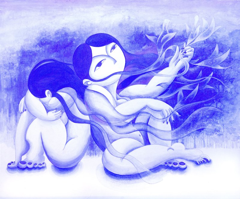 이효선 작가는 인물을 자신만의 규칙으로 표현한다. 파란 피부, 기하학적인 몸의 형태, 입이 없는 얼굴은 작가의 작품 속에 주로 등장하는 인물들의 특징이다. 작가는 파란색에 많은 이야기를 담을 수 있으며 동시에 우리 모두가 감정을 이입할 수 있는 색이라고 말한다. 또한 입이 없는 마스크를 가진 인물은 감정을 읽을 수 있는 대상, 누군지 명확하게 알 수 없다는 점에서 익명성을 가지게 된다. 기하학으로 표현된 몸도 그렇다. 모두에게 있는 공통적 몸의 구성을 단순화시켜 작품 속 인물을 타인이 될 수도 있고 우리 자신이 될 수도 있게 한다. 작가는 감상자 개인의 이야기를 자신의 작품 속에 투영할 수 있는 장치를 설치해 작품으로 하여금 무한한 의미를 가지게 한다.