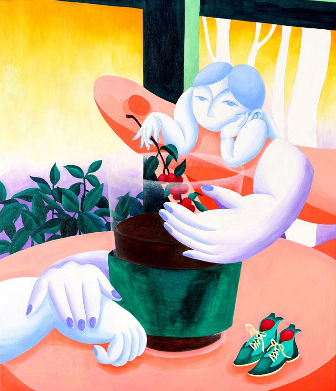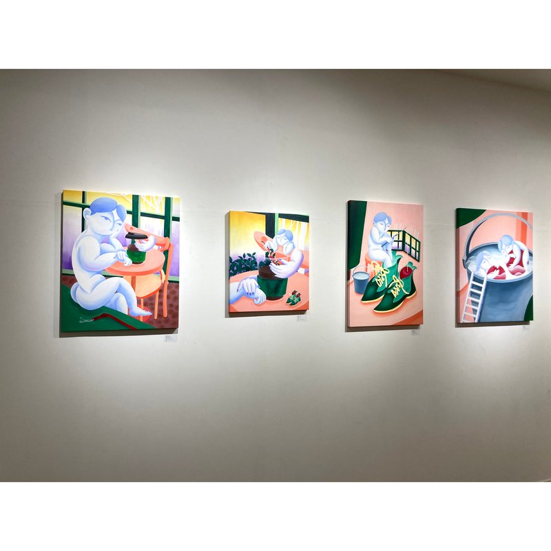 이효선 작가는 인물을 자신만의 규칙으로 표현한다. 파란 피부, 기하학적인 몸의 형태, 입이 없는 얼굴은 작가의 작품 속에 주로 등장하는 인물들의 특징이다. 작가는 파란색에 많은 이야기를 담을 수 있으며 동시에 우리 모두가 감정을 이입할 수 있는 색이라고 말한다. 또한 입이 없는 마스크를 가진 인물은 감정을 읽을 수 있는 대상, 누군지 명확하게 알 수 없다는 점에서 익명성을 가지게 된다. 기하학으로 표현된 몸도 그렇다. 모두에게 있는 공통적 몸의 구성을 단순화시켜 작품 속 인물을 타인이 될 수도 있고 우리 자신이 될 수도 있게 한다. 작가는 감상자 개인의 이야기를 자신의 작품 속에 투영할 수 있는 장치를 설치해 작품으로 하여금 무한한 의미를 가지게 한다.