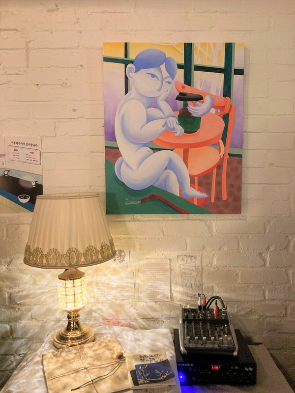 이효선 작가는 인물을 자신만의 규칙으로 표현한다. 파란 피부, 기하학적인 몸의 형태, 입이 없는 얼굴은 작가의 작품 속에 주로 등장하는 인물들의 특징이다. 작가는 파란색에 많은 이야기를 담을 수 있으며 동시에 우리 모두가 감정을 이입할 수 있는 색이라고 말한다. 또한 입이 없는 마스크를 가진 인물은 감정을 읽을 수 있는 대상, 누군지 명확하게 알 수 없다는 점에서 익명성을 가지게 된다. 기하학으로 표현된 몸도 그렇다. 모두에게 있는 공통적 몸의 구성을 단순화시켜 작품 속 인물을 타인이 될 수도 있고 우리 자신이 될 수도 있게 한다. 작가는 감상자 개인의 이야기를 자신의 작품 속에 투영할 수 있는 장치를 설치해 작품으로 하여금 무한한 의미를 가지게 한다.