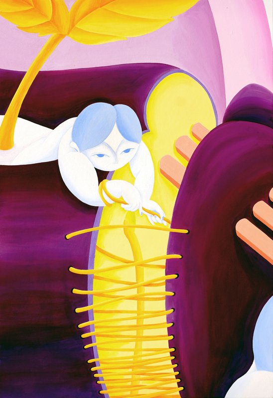 이효선 작가는 인물을 자신만의 규칙으로 표현한다. 파란 피부, 기하학적인 몸의 형태, 입이 없는 얼굴은 작가의 작품 속에 주로 등장하는 인물들의 특징이다. 작가는 파란색에 많은 이야기를 담을 수 있으며 동시에 우리 모두가 감정을 이입할 수 있는 색이라고 말한다. 또한 입이 없는 마스크를 가진 인물은 감정을 읽을 수 있는 대상, 누군지 명확하게 알 수 없다는 점에서 익명성을 가지게 된다. 기하학으로 표현된 몸도 그렇다. 모두에게 있는 공통적 몸의 구성을 단순화시켜 작품 속 인물을 타인이 될 수도 있고 우리 자신이 될 수도 있게 한다. 작가는 감상자 개인의 이야기를 자신의 작품 속에 투영할 수 있는 장치를 설치해 작품으로 하여금 무한한 의미를 가지게 한다.