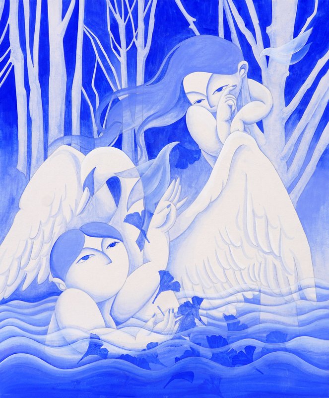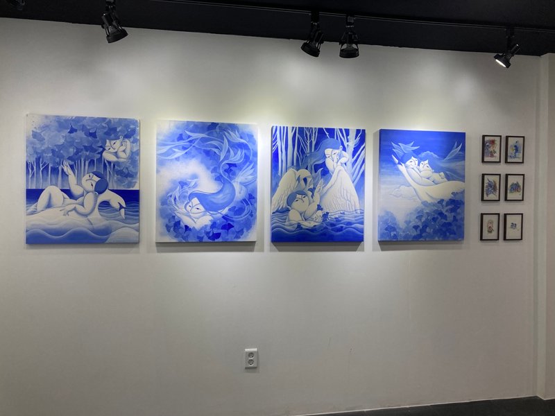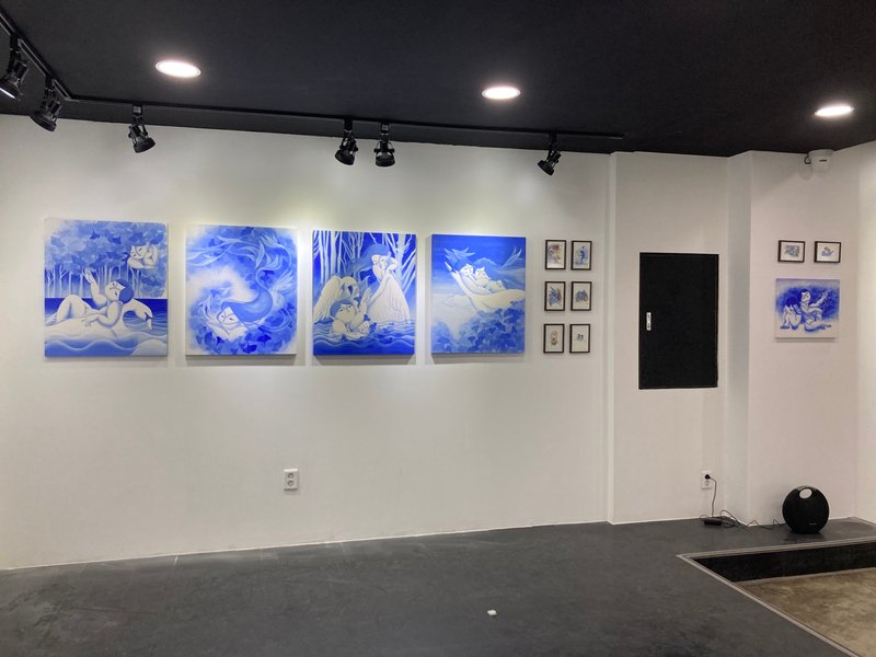 이효선 작가는 인물을 자신만의 규칙으로 표현한다. 파란 피부, 기하학적인 몸의 형태, 입이 없는 얼굴은 작가의 작품 속에 주로 등장하는 인물들의 특징이다. 작가는 파란색에 많은 이야기를 담을 수 있으며 동시에 우리 모두가 감정을 이입할 수 있는 색이라고 말한다. 또한 입이 없는 마스크를 가진 인물은 감정을 읽을 수 있는 대상, 누군지 명확하게 알 수 없다는 점에서 익명성을 가지게 된다. 기하학으로 표현된 몸도 그렇다. 모두에게 있는 공통적 몸의 구성을 단순화시켜 작품 속 인물을 타인이 될 수도 있고 우리 자신이 될 수도 있게 한다. 작가는 감상자 개인의 이야기를 자신의 작품 속에 투영할 수 있는 장치를 설치해 작품으로 하여금 무한한 의미를 가지게 한다.