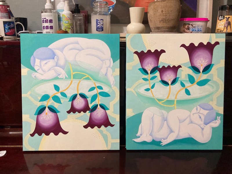 이효선 작가는 인물을 자신만의 규칙으로 표현한다. 파란 피부, 기하학적인 몸의 형태, 입이 없는 얼굴은 작가의 작품 속에 주로 등장하는 인물들의 특징이다. 작가는 파란색에 많은 이야기를 담을 수 있으며 동시에 우리 모두가 감정을 이입할 수 있는 색이라고 말한다. 또한 입이 없는 마스크를 가진 인물은 감정을 읽을 수 있는 대상, 누군지 명확하게 알 수 없다는 점에서 익명성을 가지게 된다. 기하학으로 표현된 몸도 그렇다. 모두에게 있는 공통적 몸의 구성을 단순화시켜 작품 속 인물을 타인이 될 수도 있고 우리 자신이 될 수도 있게 한다. 작가는 감상자 개인의 이야기를 자신의 작품 속에 투영할 수 있는 장치를 설치해 작품으로 하여금 무한한 의미를 가지게 한다.