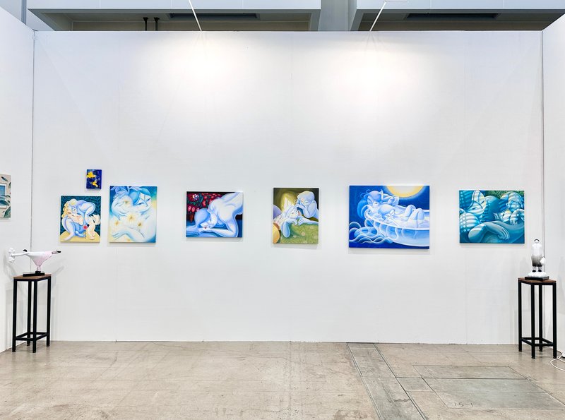 이효선 작가는 인물을 자신만의 규칙으로 표현한다. 파란 피부, 기하학적인 몸의 형태, 입이 없는 얼굴은 작가의 작품 속에 주로 등장하는 인물들의 특징이다. 작가는 파란색에 많은 이야기를 담을 수 있으며 동시에 우리 모두가 감정을 이입할 수 있는 색이라고 말한다. 또한 입이 없는 마스크를 가진 인물은 감정을 읽을 수 있는 대상, 누군지 명확하게 알 수 없다는 점에서 익명성을 가지게 된다. 기하학으로 표현된 몸도 그렇다. 모두에게 있는 공통적 몸의 구성을 단순화시켜 작품 속 인물을 타인이 될 수도 있고 우리 자신이 될 수도 있게 한다. 작가는 감상자 개인의 이야기를 자신의 작품 속에 투영할 수 있는 장치를 설치해 작품으로 하여금 무한한 의미를 가지게 한다.