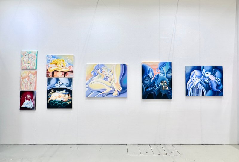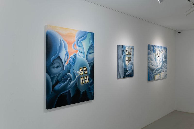이효선 작가는 인물을 자신만의 규칙으로 표현한다. 파란 피부, 기하학적인 몸의 형태, 입이 없는 얼굴은 작가의 작품 속에 주로 등장하는 인물들의 특징이다. 작가는 파란색에 많은 이야기를 담을 수 있으며 동시에 우리 모두가 감정을 이입할 수 있는 색이라고 말한다. 또한 입이 없는 마스크를 가진 인물은 감정을 읽을 수 있는 대상, 누군지 명확하게 알 수 없다는 점에서 익명성을 가지게 된다. 기하학으로 표현된 몸도 그렇다. 모두에게 있는 공통적 몸의 구성을 단순화시켜 작품 속 인물을 타인이 될 수도 있고 우리 자신이 될 수도 있게 한다. 작가는 감상자 개인의 이야기를 자신의 작품 속에 투영할 수 있는 장치를 설치해 작품으로 하여금 무한한 의미를 가지게 한다.