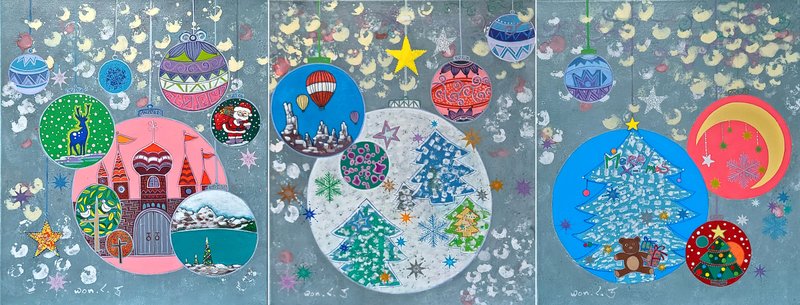 원춘자 작가는 특정 오브제, 즉 사물을 단순화하는 동시에 사물이 가진 특정 매력이 돋보이도록 변형해 화면 안에 담아낸다. 작품에는 꽃잎만을 크게 부각시킨 배꽃부터 불꽃을 형상화한 양귀비, 감정의 다양한 울림을 표현한 장미꽃, 동화 속에 나올 법한 따뜻한 마을 속의 풍경이 주로 담겨있다. 작가는 위와 같은 사물과 풍경이 지닌 일부 특징을 자신만의 방법으로 해석하기도 하고, 한편으론 자신이 표현하고자 하는 메시지를 사물을 통해 담아내고 있다. 선명하고 다채로운 색감은 화려하거나 강렬하기보다는 활기차고 따뜻하게 다가온다. 사물과 풍경에 특유의 따뜻함을 담아 위로와 격려를 건네고자 하는 작가의 메시지는 관람자로 하여금 깊은 감동을 느끼게 한다.