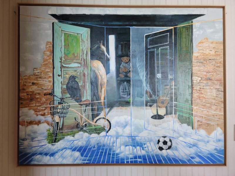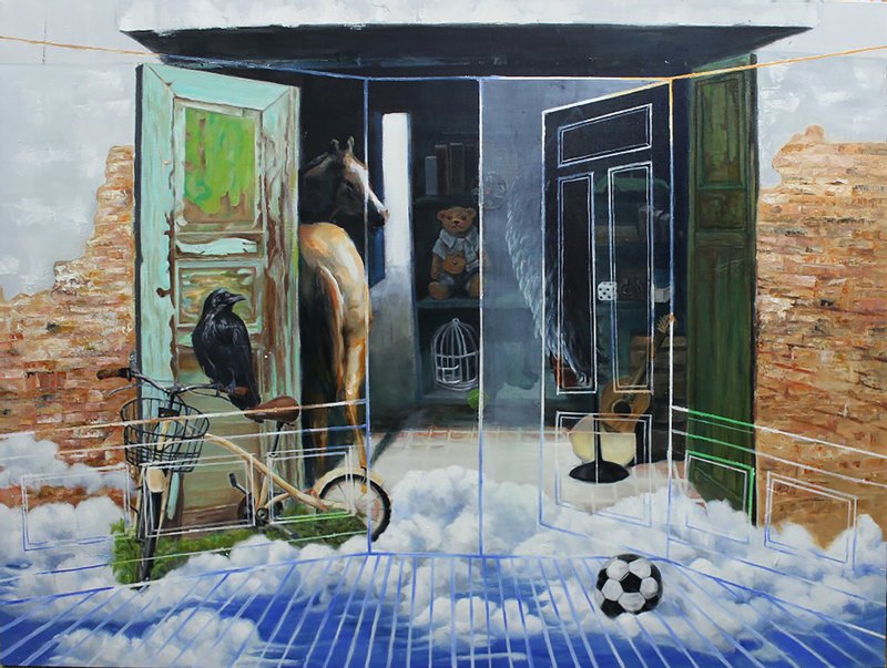 이준이 작가는 천연 염색 보를 사용하여 고향에 대한 향수를 극대화하여 작업한다. 어릴 적 추억을 대표하는 고향 집에 대한 그리움을 동양 전통 기법의 염색 천과 아크릴 물감, 캔버스를 조화롭게 사용하여 화면을 구성한다. 개인을 이루는 것 중 근간이 되는 뿌리에 대한 질문, 작가는 그것을 고향에 대한 그리움, 안타까움 등의 감정으로 정의하고 시각화하여 보여준다. 아득한 기억 속 잊고 지냈던 행복한 장면들이 소환되는 작품은 감상자에게 공감과 위안을 끌어내 편안한 심상을 제공한다.