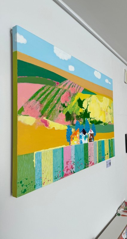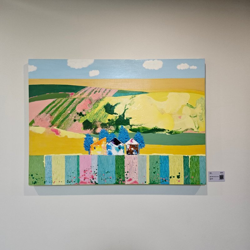 짙은 밤하늘을 수놓은 별빛, 소박하지만 정겹고 익숙한 풍경은 우리가 마음속 간직한 고향에 대한 이미지입니다. 특별한 것 없지만, 일상적인 행복이 가득한 고향 집은 그 자체로 따스한 안정감을 줍니다. 이준이 작가는 타지에서 곧장 갈 수 없어 아쉬운 마음이 더해진 고향에 대한 그리움을 전통 염색 천과 아크릴을 혼합하여 작가만의 확장된 세계를 보여줍니다. 각박한 도시 생활에 지쳐 위로와 휴식이 필요할 때 작품을 보며 따듯한 추억을 회상해 보세요.
