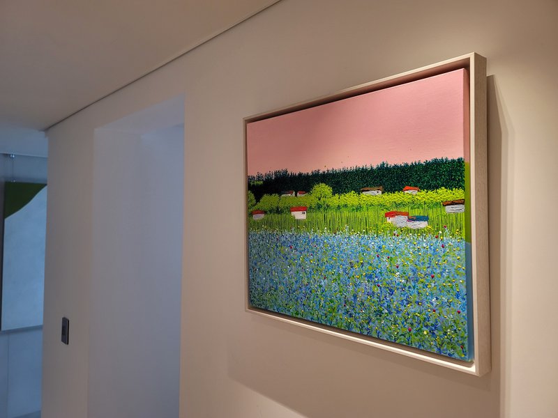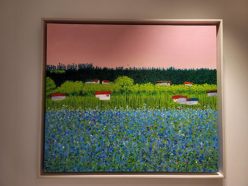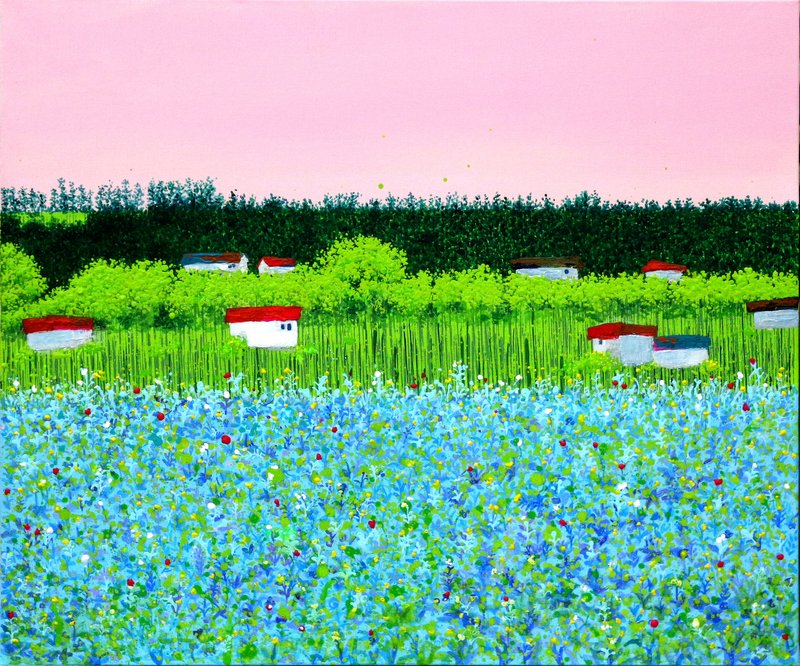 짙은 밤하늘을 수놓은 별빛, 소박하지만 정겹고 익숙한 풍경은 우리가 마음속 간직한 고향에 대한 이미지입니다. 특별한 것 없지만, 일상적인 행복이 가득한 고향 집은 그 자체로 따스한 안정감을 줍니다. 이준이 작가는 타지에서 곧장 갈 수 없어 아쉬운 마음이 더해진 고향에 대한 그리움을 전통 염색 천과 아크릴을 혼합하여 작가만의 확장된 세계를 보여줍니다. 각박한 도시 생활에 지쳐 위로와 휴식이 필요할 때 작품을 보며 따듯한 추억을 회상해 보세요.