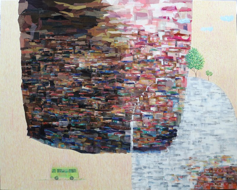 짙은 밤하늘을 수놓은 별빛, 소박하지만 정겹고 익숙한 풍경은 우리가 마음속 간직한 고향에 대한 이미지입니다. 특별한 것 없지만, 일상적인 행복이 가득한 고향 집은 그 자체로 따스한 안정감을 줍니다. 이준이 작가는 타지에서 곧장 갈 수 없어 아쉬운 마음이 더해진 고향에 대한 그리움을 전통 염색 천과 아크릴을 혼합하여 작가만의 확장된 세계를 보여줍니다. 각박한 도시 생활에 지쳐 위로와 휴식이 필요할 때 작품을 보며 따듯한 추억을 회상해 보세요.