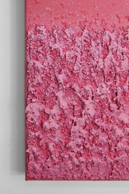작가는 부피를 가지지 못하는 평면적 이미지가 많은 시각적 오류를 내포하고 있다고 말하며, 이에 물질로 인식되는 오브제를 만드는 것을 목표로 회화적 실험을 지속하였고, 그 결과 이와 같은 ‘돌출 회화’ 연작을 작업하게 되었다고 한다. 돌출된 부분과 그 돌출 지점 사이 동굴과 같이 안쪽으로 움푹 들어간 부분들은 그려진 음영이 아닌 실제의 입체적 음영을 만들어내고 있다. 그 음영은 다른 조명과 빛의 방향에 따라 매번 다른 부피감과 물성을 화면 속에 구현해 낸다.