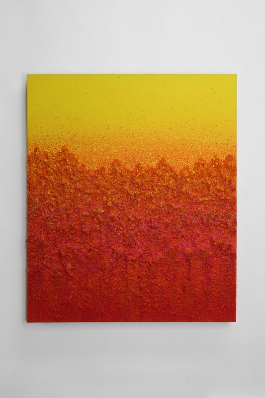 김양희 작가의 작품은 일반적인 평면 회화보다는 흡사 부조와 같은 형태를 하고 있다. 판판한 회화 프레임으로부터 물감과 다양한 재료들이 축적되어 만들어진 불규칙한 덩어리와 형태들이 평면을 깨고 입체적으로 튀어나와 있다. 작가의 작품에는 ‘그렸다’라는 표현보다는 살을 붙여 부피를 확장해 나가는 소조의 과정을 거쳤다는 설명이 더욱 적합해 보인다.